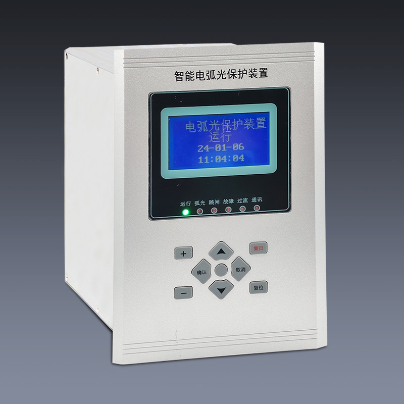 弧光保护装置是母线型弧光保护系统的主要核心设备。主要用来检测分析故障信号、接收分析采集单元的弧光故障信号,并对两种信号进行综合分析判断。在满足跳闸条件时,发出跳闸指令以切除故障。安装于进线柜或紧邻进线柜的开关柜的二次控制门板上。